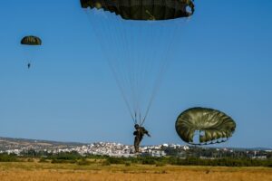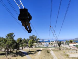 Για πρώτη φορά η Σχολή Αξιωματικών Νοσηλευτικής συμμετείχε με 10 σπουδαστές (2 τεταρτοετείς και 8 τριτοετείς) στο Σχολείο Βασικής Εκπαίδευσης Αλεξιπτωτιστών Στατικού Ιμάντα, το οποίο πραγματοποιήθηκε στη Σχολή Αλεξιπτωτιστών στον Ασπρόπυργο Αττικής από τις 21 Ιουλίου έως τις 4 Αυγούστου 2025.
